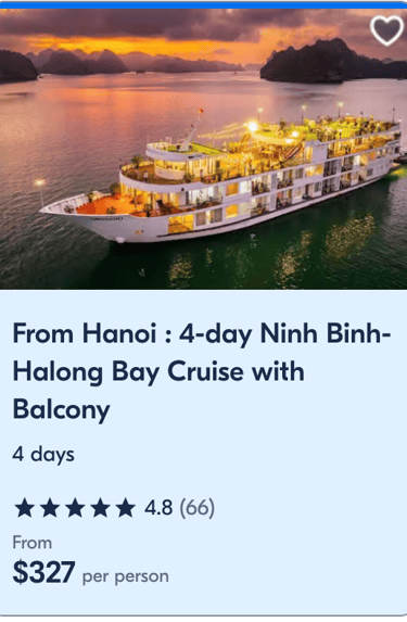 Explore Vietnam’s highlights with ease on this 4-Day Ninh Binh and Halong Bay adventure from Hanoi. Visit ancient temples, bike through peaceful villages, cruise past limestone karsts, and kayak in stunning Halong Bay, all with accommodations and transfers included. Perfect for couples or travelers in their 40s looking for a scenic, culture-rich escape.
